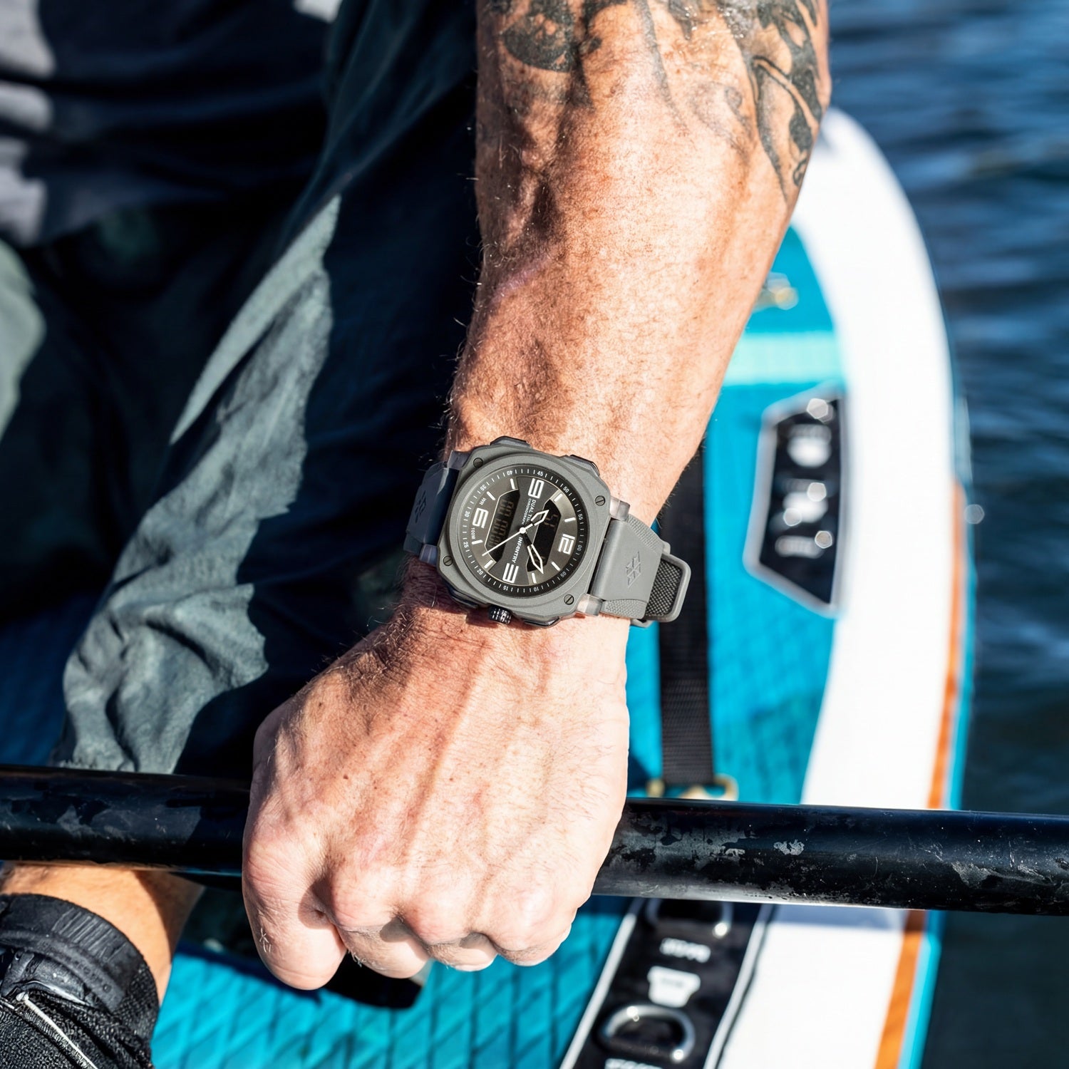 Boîtier de montre en polymère renforcé + plaque supérieure en acier inoxydable
